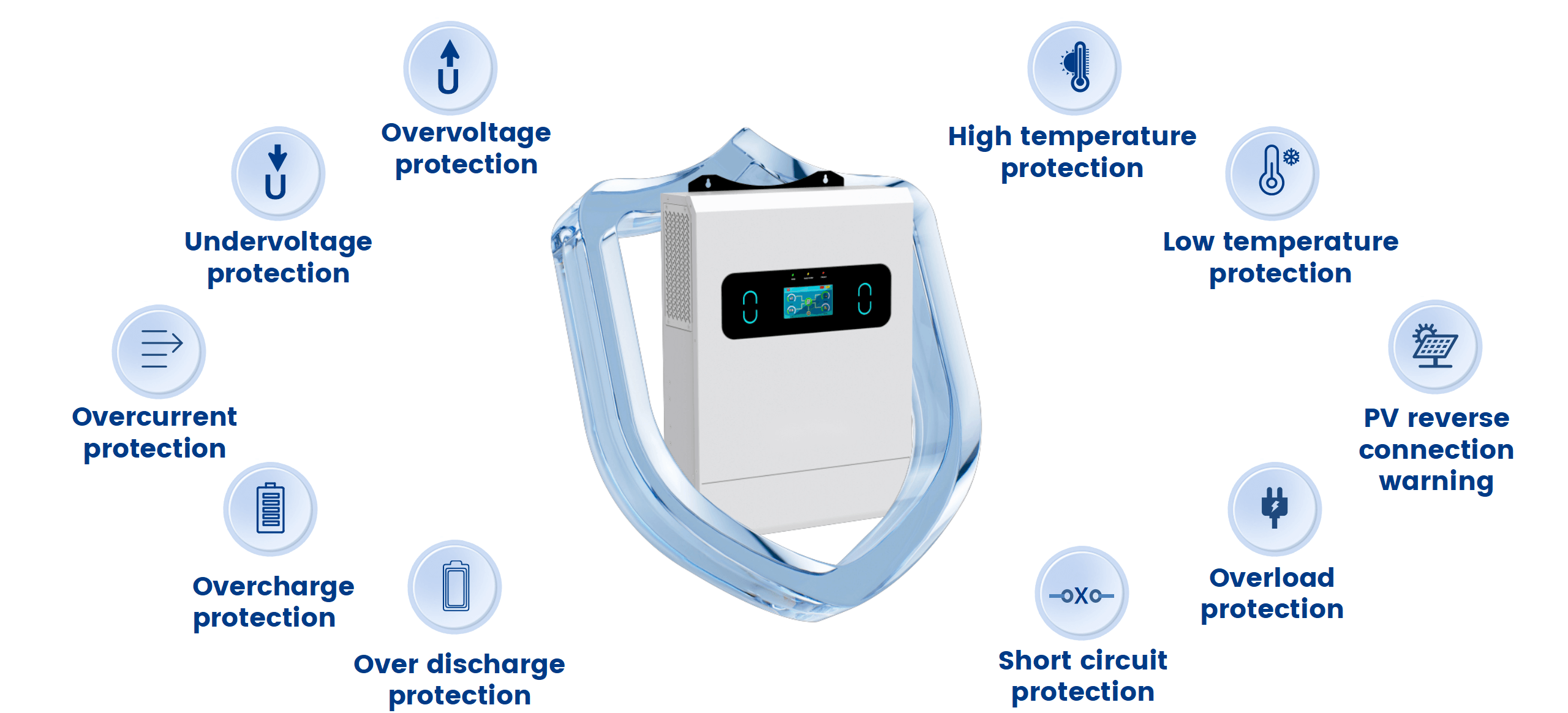 Protection Function | Over/Under Voltage Protection, Over/Under Frequency Protection, AC Output Short Circuit Protection, AC Output Overload Protection, High/Low Temp Protection | ||